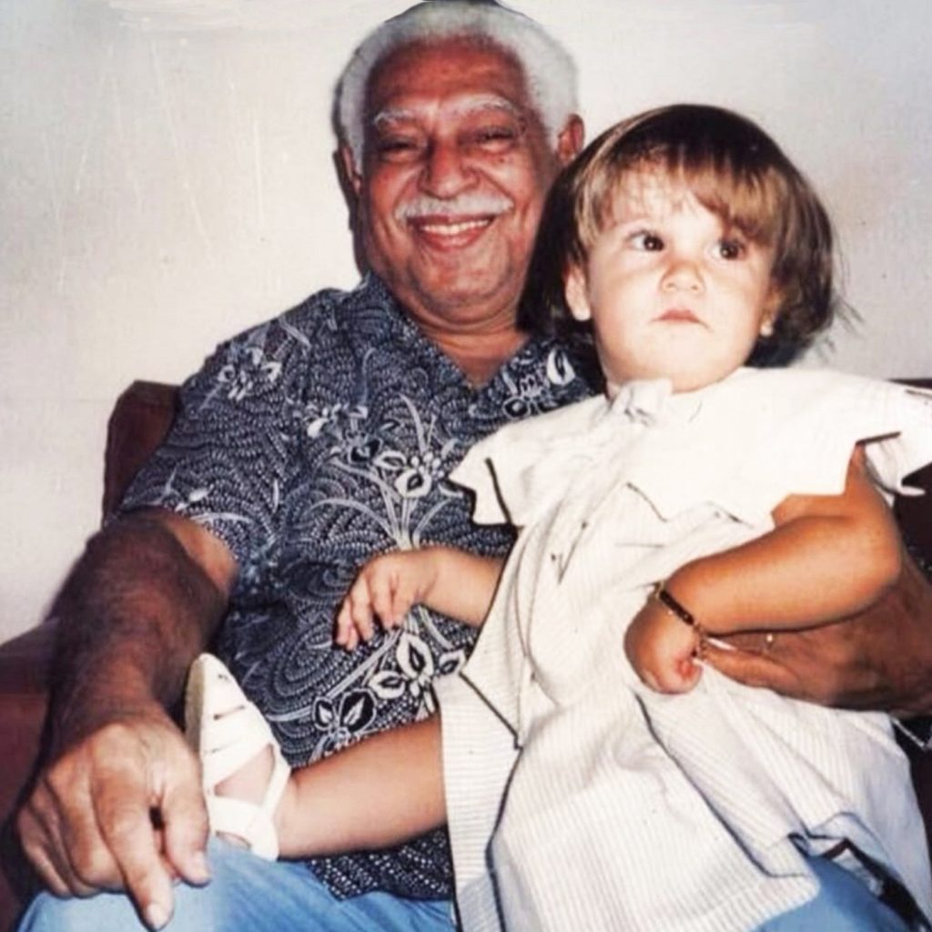 Alice Caymmi com um ano de idade no colo do avô, Dorival Caymmi (1914 – 2008)
